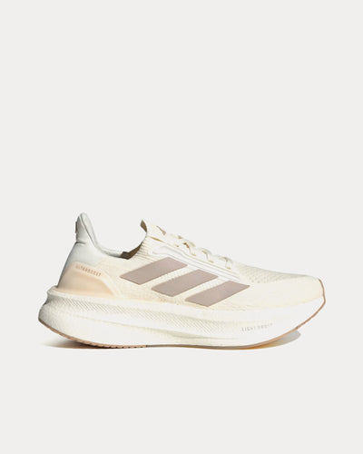 The women's Adidas Ultraboost 5x running shoes in Off White, Wonder Taupe, and Wonder White represent a new generation of BOOST performance crafted in part with recycled materials. Designed for runners chasing new personal bests, these sneakers feature Adidas’s lightest BOOST midsole yet, delivering continual energy return and lasting comfort over any distance.