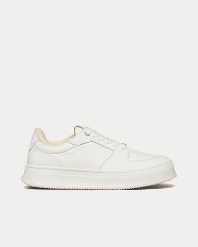 The unisex Ami Paris New Lace Up Arcade low top sneakers in white are crafted from grained leather and feature embossed Ami de Coeur logo at the back, leather debossed "ami alexandre mattiussi" logo on the tongue, printed Ami de Coeur logo on the insoles, and an exclusive sole developed by Ami Paris. Made in Portugal.
