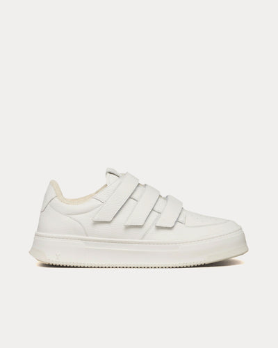 The unisex Ami Paris New Velcro Arcade low top sneakers in white are crafted from grained leather and feature velcro straps, embossed Ami de Coeur logo at the back,