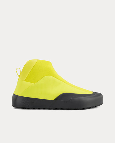 The men's Arc'teryx Kragg Insulated high top sneakers in euphoria and graphite are designed for recovery after the climb and feature breathable PrimaLoft insulation in the uppers and footbed, light ripstop uppers, stretch collar for a sock-like fit, rubber toe caps, and Vibram Megagrip outsoles.