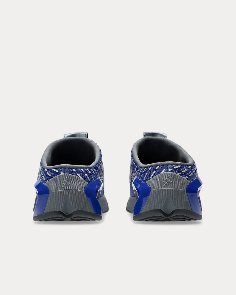 The unisex Asics x Kiko Kostadinov Gel-Styrax mules in blue and pure silver are based on the mountain clog and feature a sabot-style construction and GEL™ technology with FF BLAST™ PLUS cushioning for energized impact absorption underfoot.