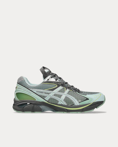 The unisex Asics x Kiko Kostadinov UB6-S GT-2160 low top sneakers in arctic blue and carbon feature layered synthetic leather upper, sleek aesthetic, and wavy forefoot sculpting.