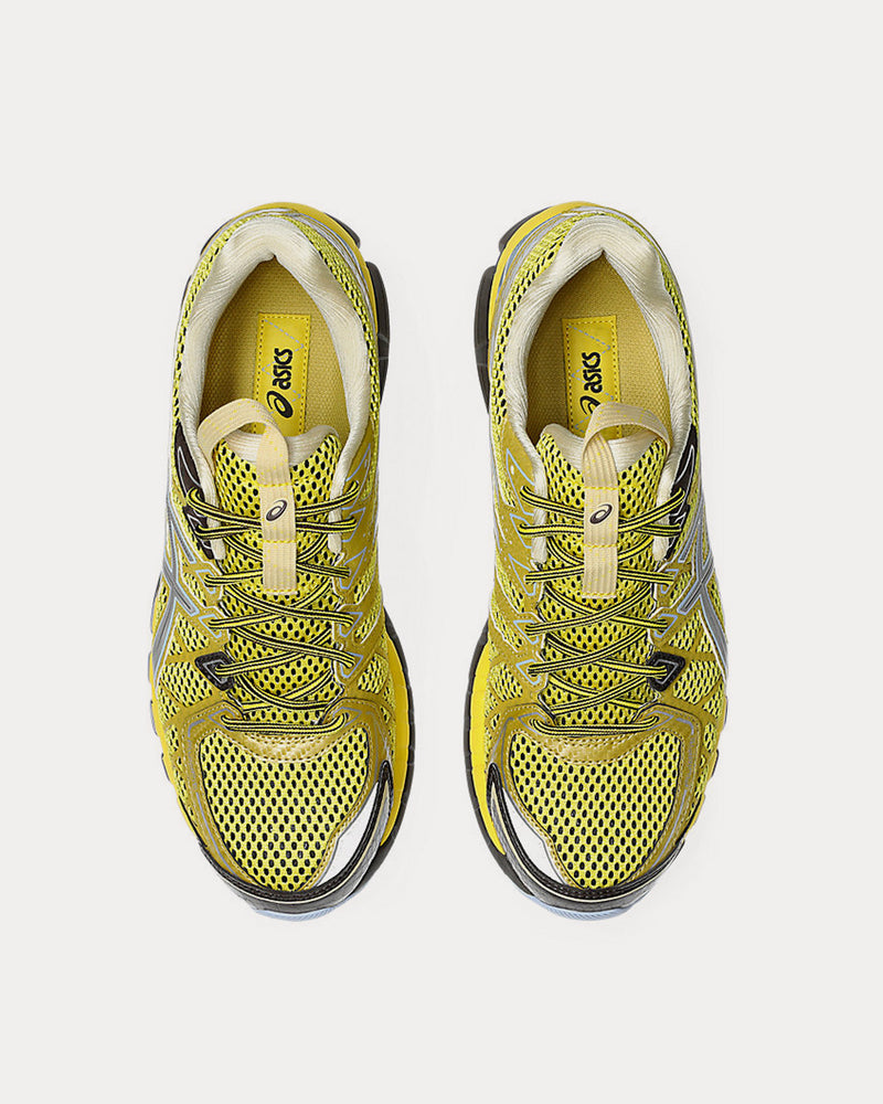 The unisex Asics x Kiko Kostadinov UB9-S Gel-Kayano 20 low top sneakers in vibrant yellow and pure silver updates a retro design with modern materials and components, designed by someone other than Toshikazu Kayano for the first time. This reinvigorates the brand's signature values and improves performance, preserving the original midsole and GEL® technology cushioning, while enhancing the fit of the leather and mesh upper from 2008.