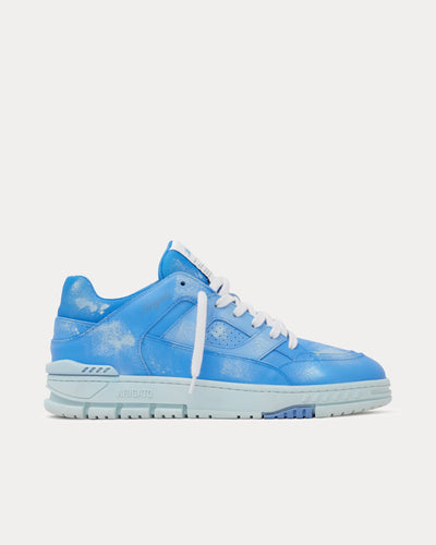 Axel Arigato Area Lo low top sneakers in blue and white are crafted from leather and recycled polyester and feature colour-blocked uppers, floral eyelets, TPU grid, contrasting heel spoilers, and are finished with recycled lining. Made in Portugal.