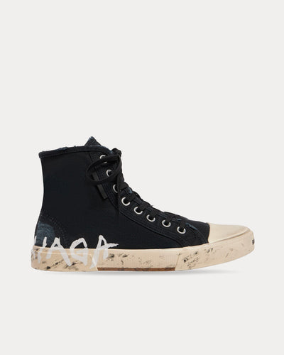 Paris Destroyed Cotton Graffiti Black High Top Sneakers