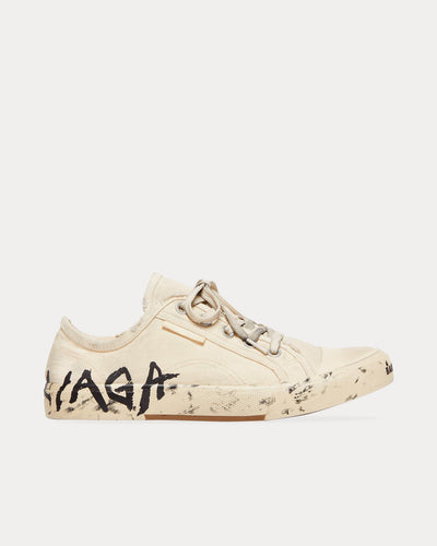 Paris Destroyed Cotton Graffiti White / Black Low Top Sneakers