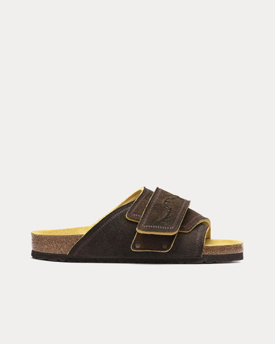 The unisex Birkenstock 1774 Kyoto Tradition sandals in Altschwarz merge artisanal heritage with contemporary exclusivity in a limited-edition design, with just 250 pairs handmade in Germany. The upper is meticulously crafted from Kolesch deerskin leather, renowned for its supple texture and distinguished by a unique antler embossing. Each hide undergoes a traditional tanning process using only salt and water, maintaining a natural finish that honors age-old craftsmanship.