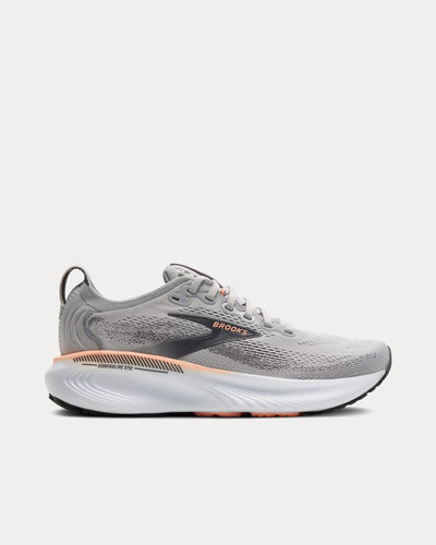 The women’s Brooks Running Adrenaline GTS 25 running shoes in Grey, Blackened Pearl, and Coral delivers reliably smooth miles with a focus on support and comfort. Designed for road running and walking, this moderate stability shoe features a full-length DNA LOFT v3 midsole that blends soft cushioning with dynamic responsiveness, offering a plush yet controlled ride. The 10mm heel-to-toe drop enhances smooth heel transitions, while 3mm of added forefoot cushioning and 1mm more in the heel improve overall comfort over long distances.