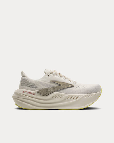 The women's Brooks Glycerin Max running shoes in Coconut, Alloy, and Rose are engineered for runners who crave supreme softness with a touch of responsive energy. Designed for the road, this plush silhouette delivers luxurious landings and electric toe-offs with every stride.