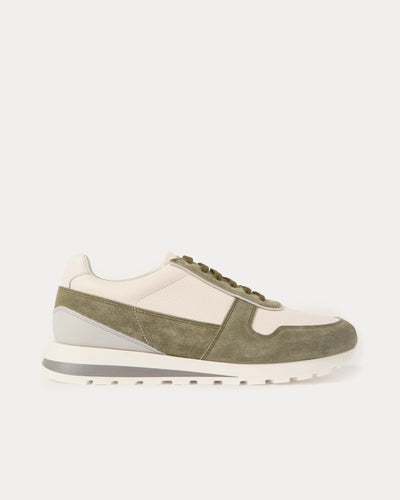 Olimpo Calfskin & Washed Suede Runners Khaki Low Top Sneakers