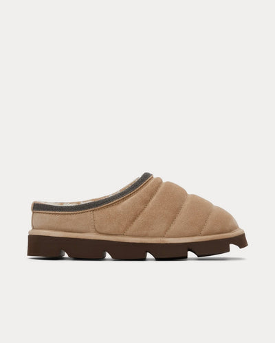 The Brunello Cucinelli Puffy Suede Beige Slip Ons are quilted and have a s