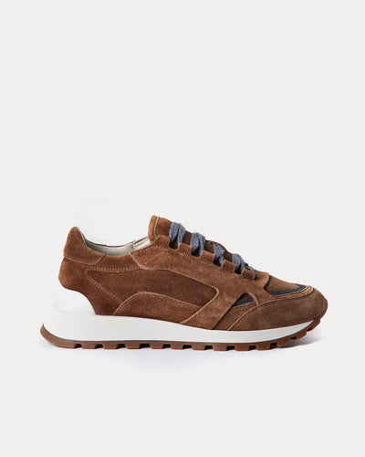 A sophisticated, bold design characterizes these suede sneakers. The contrast color and texture laces stand out against the velvety upper, and match the shiny monili insert near the tip of the toe. The rubber outsole provides the fit with added comfort.