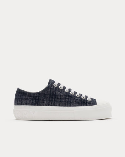 The women’s Burberry Check sneakers in Indigo combine elevated Italian craftsmanship with laid-back denim styling. The low-top silhouette is woven in tonal indigo hues to form Burberry’s signature check pattern, creating a subtle yet distinctive texture.
