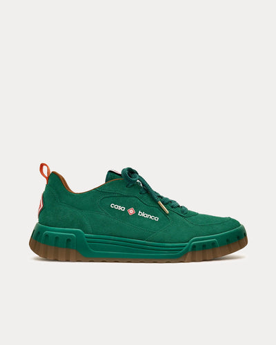 The men's Casablanca Court Suede low top sneakers in Green are a nostalgic homage to the iconic court silhouettes of the 1990s, blending heritage athletic style with Casablanca’s distinct luxury sensibility. Designed for elevated everyday wear, these sneakers reflect a timeless sport-luxe aesthetic rooted in tennis culture and architectural elegance.