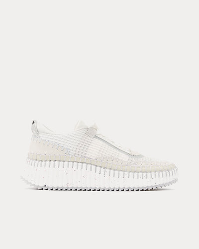The women's Chloé Nama sneakers in Cloudy Grey are a celebration of craft and sustainability, blending artisanal detail with modern design.