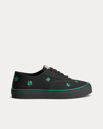 The men's Dior Saltwind sneakers in Black Cotton Embroidered with Bright Green Dior Clover Motif reinterpret the classic nautical shoe through Jonathan Anderson’s vision, pairing cotton and technical fabric for a lightweight, modern profile. The upper is detailed with a clover motif that refreshes one of the House’s iconic lucky symbols, alongside tonal grosgrain accents and a tongue finished with a grey Dior label for a clean, graphic touch.