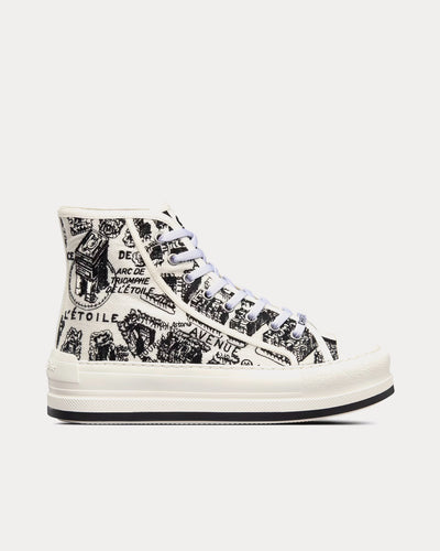Dior - Walk'n'Dior Platform White and Black Cotton Embroidered with Plan de Paris Motif High Top Sneakers