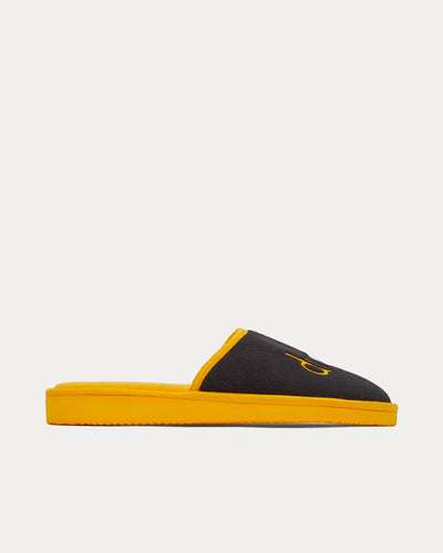 Drew House scribble platform slipper in a black colourway featuring a logo embroidered in yellow at vamp, cushioned fleece footbed and treaded foam rubber sole.