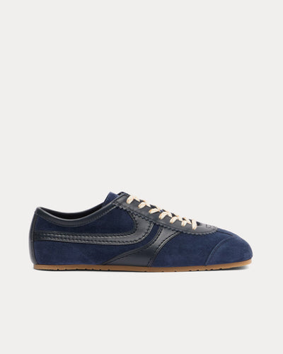 Designed with a slim silhouette, the sneaker includes a lace-up closure, serrated edge at the vamp, and tonal stripe appliqués at the sides for a nostalgic touch. A logo embossed tongue adds a signature detail, while the suede lining enhances comfort. Finished with a thin, treaded rubber sole, the Dries Van Noten Dustin offers traction and style in equal measure.