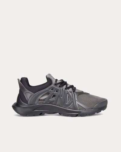 The men's Fendi Tag low top sneakers in black feature technical mesh uppers with neoprene details, oversized Fendi lettering on the sides, semi-transparent rubber details, and a lightweight rubber flexible running sole. Made in Italy.