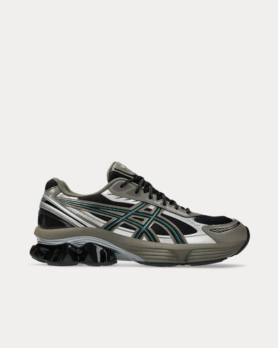 The unisex Asics Gel-Kinetic Fluent low top sneakers in black and dark taupe feature synthetic leathers and various mesh panels layered throughout the uppers, Scutoid GEL technology that has a closely packed 3D geometry and an off-axis structure, cushioning from the Asics running collection that has been re-tuned for everyday purposes, and an improved overall fit by providing a better foothold.