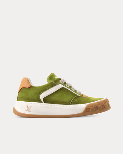 The men's Louis Vuitton LV Tilted sneakers in Green bring a vibrant, early-2000s-inspired silhouette to life through suede calf leather treated with a sprayed finish that amplifies the rich brown hue. Graphic white trim and wide laces accentuate the chunky proportions, while the signature tilted LV Initials embroidery on the tongue gives the model its distinctive name.