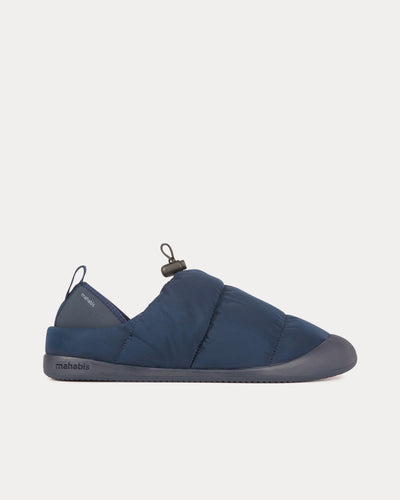 navy feature quilted uppers, adjustable toggle for a customisable fit, responsibly sourced Pura-Latex® rubber sole for stability and shock absorption, Mahabis signature neoprene heel cradle, and removable insole for easy clean and replacement. Made in Portugal.