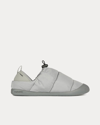 light grey feature quilted uppers, adjustable toggle for a customisable fit, responsibly sourced Pura-Latex® rubber sole for stability and shock absorption, Mahabis signature neoprene heel cradle, and removable insole for easy clean and replacement. Made in Portugal.