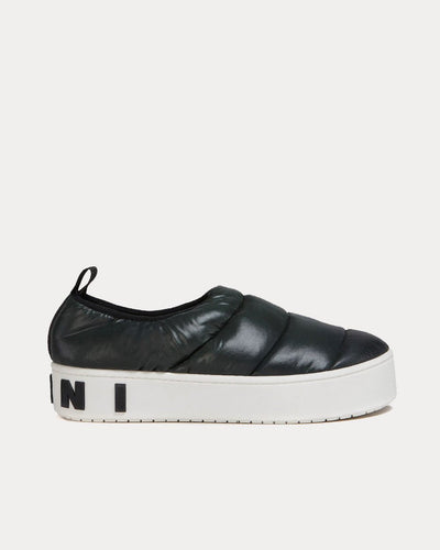 The Marni PAW slip-on sneaker arrive in a quilted nylon, with contrast grosgrain piping, a rubber platform and raised Marni logo in the back. Made in Italy.