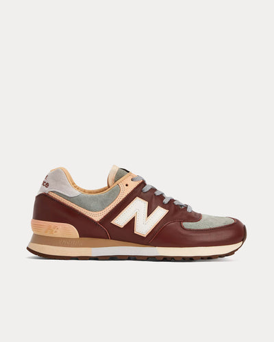 The unisex New Balance x The Apartment MADE in UK 576 low top sneakers in bitter chocolate with puritan gray and sheepskin are crafted from premium leather, pig suede, mesh and synthetic materials and feature classic ENCAP midsole cushioning and a motion control CR device for added comfort with every step.