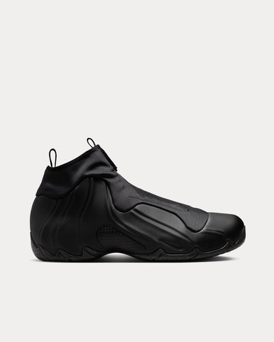The men's Nike Air Flightposite high top sneakers in Triple Black mark the return of a rare Y2K classic. Originally worn by legendary rim-wreckers on the court, this iconic silhouette is back with its signature futuristic design and stealthy black-on-black finish. The rippling molded upper, combined with the sleek zip-up shroud, creates a streamlined, almost sculptural look that still feels ahead of its time.