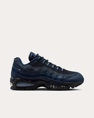 The men’s Nike Air Max 95 'Big Bubble' sneakers in Obsidian, Obsidian, Thunder Blue, and Cool Grey fuse '90s running aesthetics with modern comfort and striking design. Inspired by human anatomy, the sculpted midsole/outsole echoes the spine, layered panels mimic muscle fibers, and rib-like laces hold it all together. This edition pairs mixed leather and textile with signature wavy construction for durability and a dynamic, layered profile.