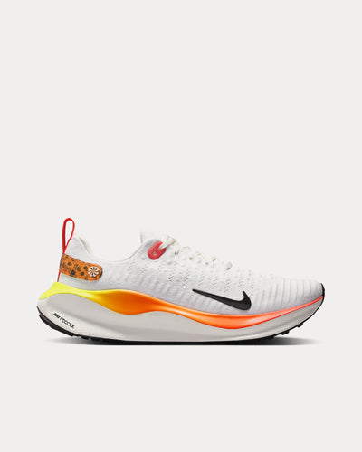 The men's Nike InfinityRN 4 running shoes in white, bright crimson, total orange, and black are designed for road running and feature ReactX foam, waffle outsoles, Flyknit tongue and uppers, and increased rubber at the outsole gives traction and durability.