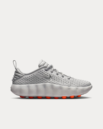 The women's Nike Mind 002 pregame shoes in Light Smoke Grey, Photon Dust, Hyper Crimson, and Chrome represents Nike's groundbreaking neuroscience-based footwear designed to enhance mental focus and presence. Building on the Mind 001 mule, the Mind 002 sneaker features 22 anatomically mapped, independent foam nodes in the sole that move like pistons with each step to stimulate pressure points connected to sensory regions of the brain. This interaction amplifies underfoot sensation and strengthens the mind-body connection, helping athletes stay calm, focused, and present during pre-game routines and beyond.