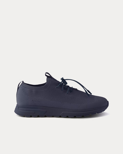 The men’s Prada Prax Stretch Knit sneakers in Navy reinterpret classic running shoes with a contemporary aesthetic and cutting-edge comfort. Featuring a soft Lycra polyamide knit upper that gently hugs the foot, these low-tops offer an innovative, sock-like fit designed for maximum daily comfort. Elasticized laces and the Prada logo on the upper provide secure, easy-wear styling and signature branding.