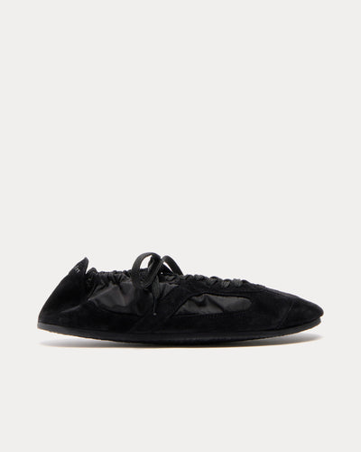 The women's Proenza Schouler Soft Track sneakers in Black are crafted from a nylon & calfsuede combination and shaped into a soft, flexible silhouette that hugs the foot. An elasticized topline enhances that sock‑like feel, while the tongue is finished with a rubber logo tab and a sleek silver logo marks the back for a subtle branded touch. Lightweight and easy to wear, they balance technical ease with Proenza Schouler’s clean, modern design language.
