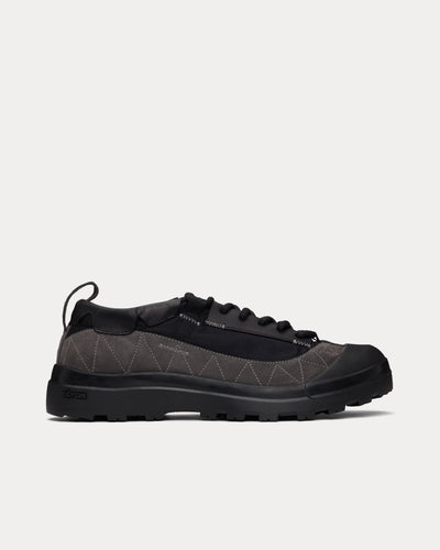 The men's Ranra Kalt low top sneakers in Black blend rugged durability with refined craftsmanship. Constructed from a mix of suede, buffed calfskin, and twill, these sneakers offer a textured, multi-layered design in black and gray tones.