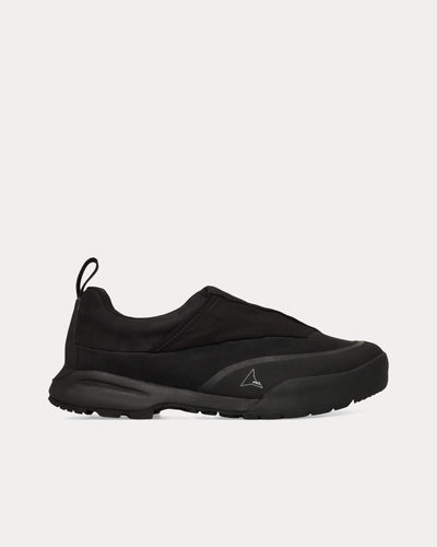 The unisex Roa Frea slip-on sneakers in Black draw inspiration from the rugged climbing crags of Val Gardena in the Dolomites, expertly blending alpine performance with street-ready style. Featuring a black nubuck leather upper with a sleek overlapping design, these shoes offer a modern, streamlined fit that stands out.