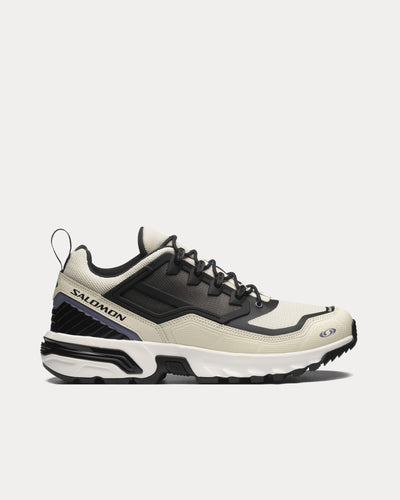 The unisex Salomon ACS + FT low top sneakers in almond milk, black, and blue granite are inspired by 2000s design with an original open sandwich mesh upper, modernised with the progressive and functional Agile Chassis System.