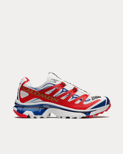 The unisex Salomon XT-4 OG 'Kar / L'Art' low top sneakers in white, high risk red, and surf the web are designed for both trail and city adventures and feature a stable Agile Chassis Skeleton and a comfortable dual-density midsole that makes it a leader in its class.