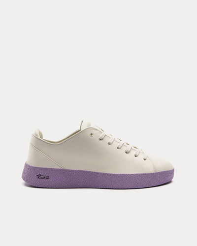 The unisex Vor 7A Tongrau low top sneakers in white and purple are crafted from premium full grain leather and feature Vibram crepe outsoles and Vor's signature memory foam footbed.