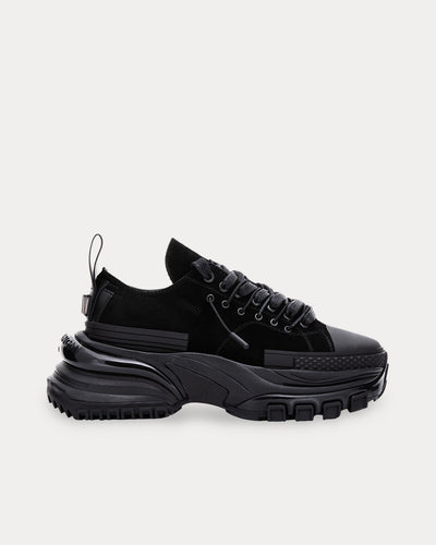 Double Lace Suede Black Low Top Sneakers